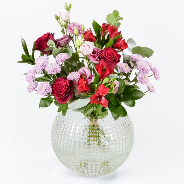 La våre dekoratører designe en vakker valentinsdagsbukett i nyanser av rosa og rødt. Med sesongens blomster og vakkert grønt er denne buketten en klar favoritt. Buketten er et eksklusivt floristarbeid der hver blomst er nøye utvalgt for å sikre høy kvalitet. Hver bukett er unikt designet spesielt for deg og bindes ut fra sortiment og sesong. Buketten leveres av en lokal florist.